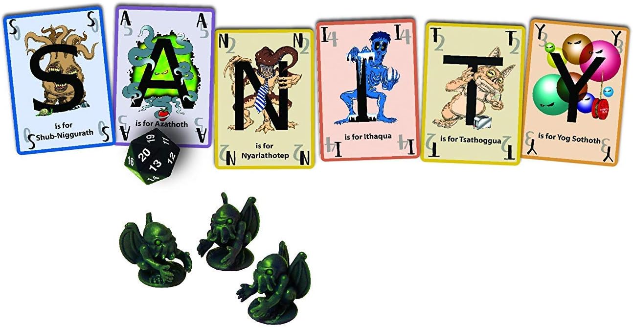 Unspeakable Words, also known as The Call of Cthulhu Word Game, is a card game that has players form words based on the cards in their hands. Bigger words can score more points but are risky since you’ll have to test your sanity with a dice roll to see if the powers of Cthulhu overpower you. Having to create words from a set of letters is a new way to test your word-forming skills.